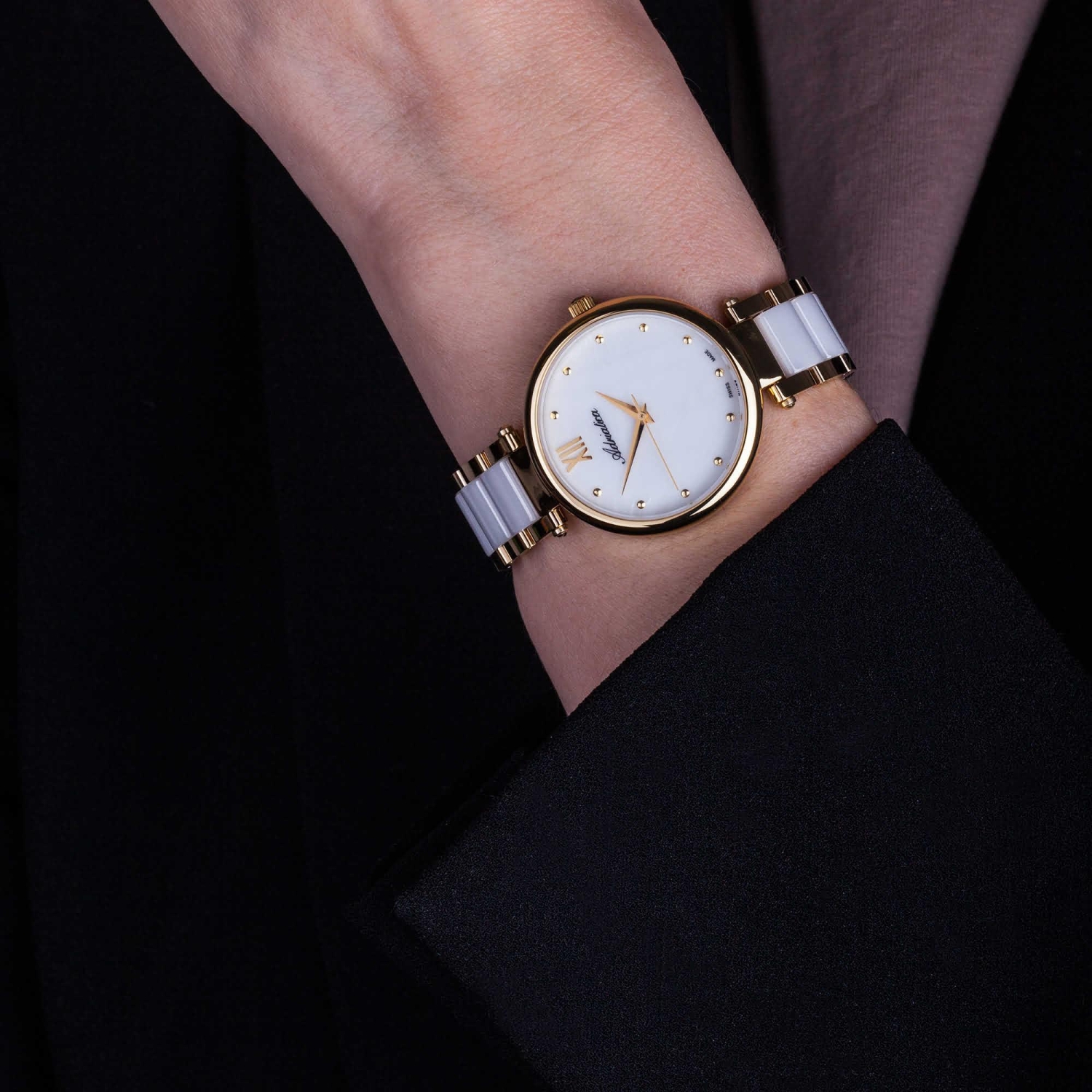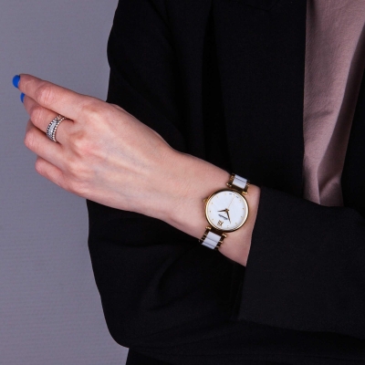 Аккуратные часы с керамическими вставками на браслете - стильное дополнение любого образа. Sophia.