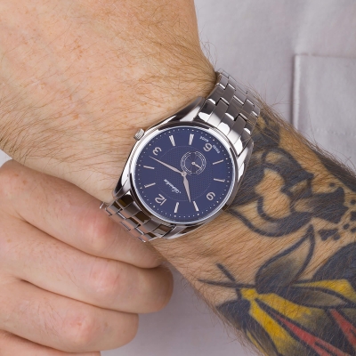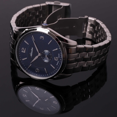 Классический дизайн, простота и качество - часы для мужчин предпочитающих деловой стиль. Premiere. Секундная стрелка вынесена на отдельный циферблат. Браслет с раскладывающейся застежкой.