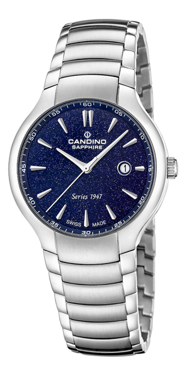 Женские кварцевые часы Candino — это сочетание элегантности и швейцарского качества. Корпус диаметром 34 мм и толщиной 8,6 мм выполнен из нержавеющей стали 316L. Циферблат синего цвета оформлен индексами, придающими изделию изысканность. Окошко даты расположено в положении 3 часов. Циферблат защищён сапфировым стеклом, устойчивым к царапинам. Механизм — кварцевый, произведённый в Швейцарии. Часы оснащены стальным браслетом на застёжке «бабочка» с кнопками. Водонепроницаемость 100 м позволяет использовать часы для плавания и повседневного ношения.