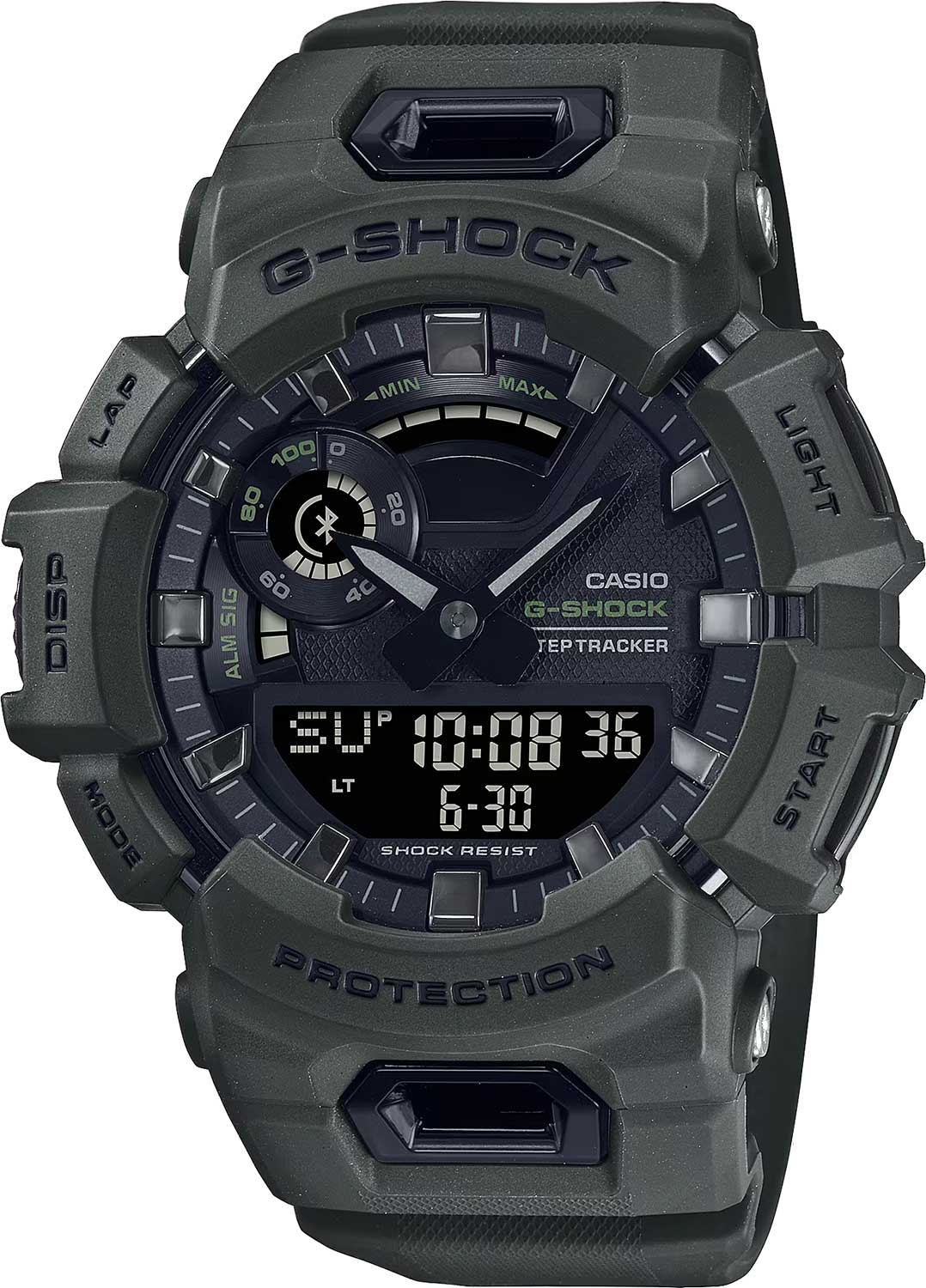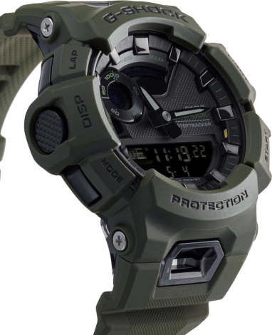 Часы G-Shock станут крутым подарком для того, кто не представляет свою жизнь без спорта. Мужские часы G-SQUAD. Противоударный корпус защищает механизм от ударов и вибрации. Двойная подcветка: циферблат и ЖК-дисплеи подсвечиваются светодиодом, благодаря наличию функции задержки, после отпускания кнопки освещение горит еще несколько секунд. Настраиваемое послесвечение 1,5 или 3сек. Цвет подсветки: белый. • Второй часовой пояс.• 12-ти и 24-х часовой формат времени.• Секундомер с целевым таймером и двумя точностями показаний: 1/100с (до 1ч) и 1с (после 1ч), время измерения 24ч. Объем памяти до 45 записей (дата, время, время круга, средний темп, сожженные калории и др.).• SPLIT-хронограф.• Таймер обратного отсчета с 5-ю предустановленными интервалами измерений и автоповтором до 20 раз. Диапазон отсчета от 1с до 1ч.• Мировое время.• Шагомер. Функция расчета Lifelog - расчет калорий и расстояния на основе количества шагов.• С помощью специального приложения G-Shock Move вы сможете просматривайте историю активности, журналы с подсчетом шагов и сожженными калориями.• Беспроводная технология Bluetooth® со сверхнизким потреблением энергии для синхронизации со смартфоном. При подключении к смартфону часы автоматически корректируют текущее время, в том числе переход на зимнее/летнее время, копируют настройки мирового времени более чем для 300 городов.• Авиарежим.• Функция перемещения стрелок для беспрепятственного просмотра информации на цифровых дисплеях, отключения/включения звука, поиска телефона, автоматического сохранения энергии.• Индикатор уровня зарядки батареи.• Водонепроницаемость в соответствии с ISO 2281.• Стальная задняя крышка крепится на 4-х винтах.• Ремешок с классической застежкой.