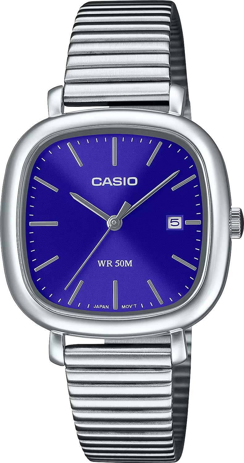 Standard. Женские часы со стальным корпусом. Циферблат с метками в виде штрихов выполнен по технологии Sunray (солнечные лучи). Окошко даты находится в положении 3 часа. Рифленая заводная головка. Батарея рассчитана на 3 года. Браслет с регулируемой застежкой.