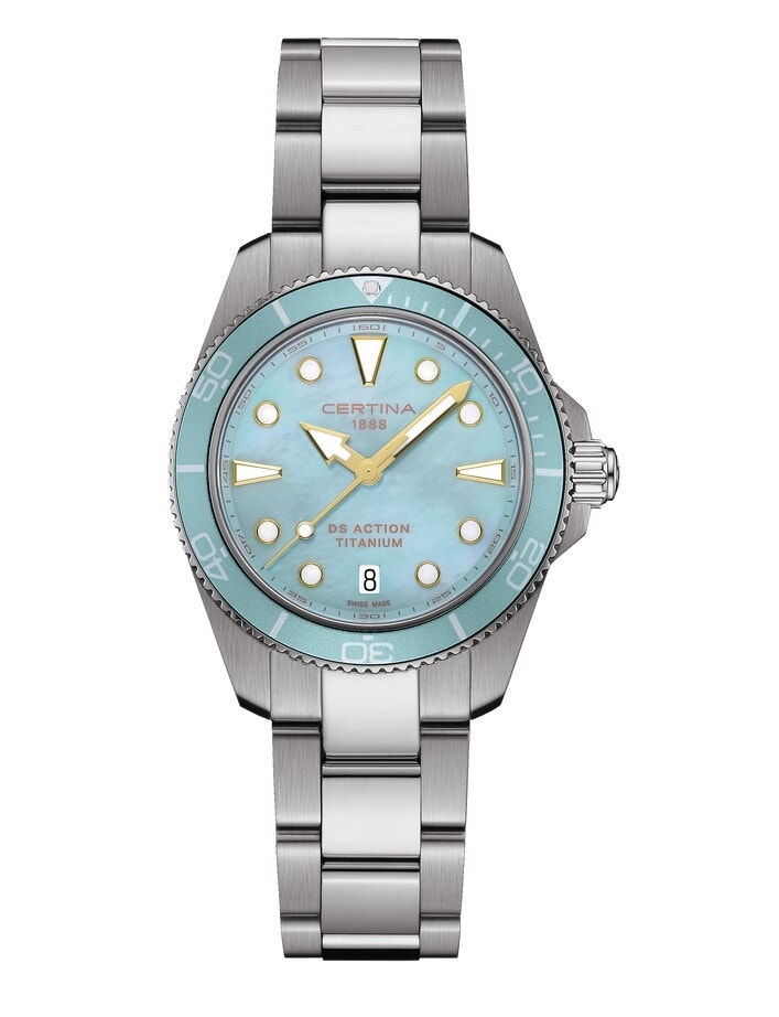 Коралловый риф – это не только важная экосистема, достойная защиты, но и поистине незабываемое зрелище. Именно поэтому швейцарская часовая компания Certina переносит яркие краски океанского дна на сушу, воплощая их в часы, которые навевают морскую атмосферу и одновременно служат универсальным аксессуаром. Перламутровый циферблат. Стрелки и метки с люминесцентным покрытием.