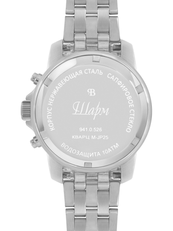 Найди свой Шарм в любых сочетаниях. Часы со спортивным характером. Корпус с браслетом выполнен из высококачественной нержавеющей стали с плавным переходом в месте крепления. Обработка браслета выполнена двумя способами – центральные звенья браслета -матовые, боковые - глянцевые. На корпусе ромбовидные засечки для придания своеобразного Шарма часам. Винтовая головка и задняя крышка обеспечивает надежную защиту от попадания воды. Накладные индексы с люминисцентным покрытием и плавным скатом к центру.