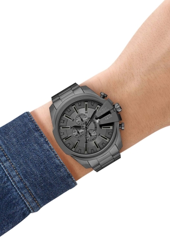 Mega Chief Slim. Мужские часы с хронографом и секундомером. Корпус из нержавеющей стали в матовом исполнении. Модель выделяется серым циферблатом с окошком даты на отметке 3 часа. Метки в виде штрихов. Стальной браслет с раскладывающейся застежкой.