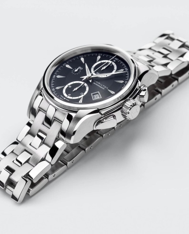 Jazzmaster Auto Chrono - это часы, которые легко приспосабливаются к ритмам современной жизни, продолжая при этом танцевать в такт собственному барабану. Для тех, кто любит традиции, но ценит инновации, модель H-21 с 60-часовым запасом хода выполнена в корпусе с плавными изгибами и чистыми линиями. Часы-хронограф H32616133 с механическим механизмом (автоматический калибр) высокой точности. Сапфировое стекло устойчивое к появлению царапин, обладающее высокой прозрачностью. Класс водозащиты: 100 метров, позволит плавать, нырять и заниматься другими водными видами спорта. Корпус часов изготовлен из нержавеющей стали. Стальной браслет на застёжке-бабочке с кнопками. Окошко даты находится в положении 4 часа. Стрелки и метки с люминесцентным покрытием.