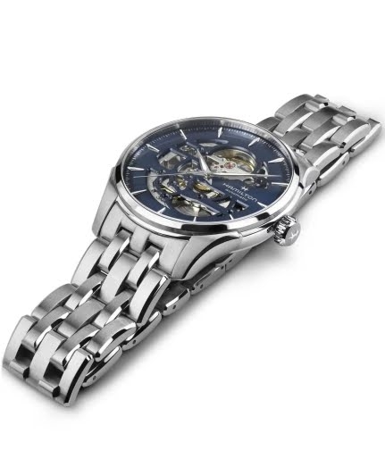 Сделайте точность своим главным приоритетом с моделью Jazzmaster Skeleton в корпусе диаметром 40 мм. Она отличается синим циферблатом скелетонизированной конструкции, раскрывающим тонкую красоту внутренней механики этих часов. Часы оснащены автоматическим механизмом H-10-S с 80-часовым запасом хода и балансовой пружиной Nivachron™ и изысканным браслетом из нержавеющей стали, демонстрирующим постоянно развивающееся мастерство Hamilton и внимание к деталям.