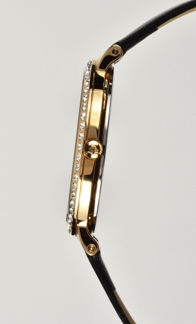 Кварцевые часы сделаны по всем канонам классического дизайна. Корпус из прочной нержавеющей стали имеет диаметр 36 мм и декорирован PVD-покрытием из желтого золота. На его полированном безеле надежно закреплены сияющие кристаллы. Минималистичный стальной циферблат с полировкой в виде солнечных лучей служит фоном для хорошо читаемых рисок и стрелок часов и минут. В модели установлено ударопрочное минеральное стекло Crystex. Ремешок сделан из натуральной кожи черного цвета. Оригинальные ушки – крепления ремешка к корпусу стали отдельным украшением этих изящных часов. Элегантные и универсальные, часы серии Milano легко придадут образу новизны и подчеркнут ваше чувство стиля.