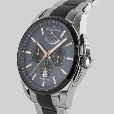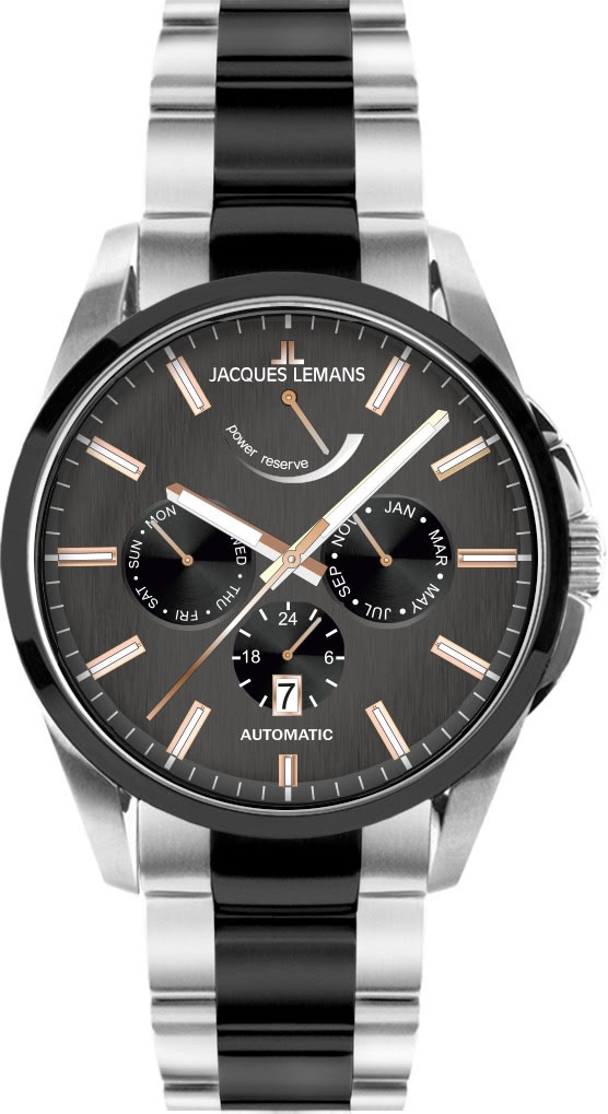 Японский механизм Miyota, работающий в часах серии 1-2204, оснащен функцией автоподзавода: его ротор способен заводить пружину, двигаясь от обычных движений руки, когда часы находятся на запястье владельца. На сером циферблате расположен индикатор запаса хода — он покажет примерное оставшееся время до окончания завода пружины. Кроме этого, в механизме предусмотрены дополнительные функции даты, дня недели, месяца и времени в формате 24-х часов. Центральные стрелки и риски выделены люминесцентным покрытием, оно светится в темноте, помогая определить время. Массивный корпус диаметром 44 мм выполнен из нержавеющей стали, дополненной PVD-покрытием черного цвета. В корпусе установлено минеральное стекло с сапфировым напылением. Конструкцией корпуса предусмотрена дополнительная защита для заводной головки. Водостойкость 10 атмосфер позволяет плавать, не снимая любимый аксессуар. Браслет часов состоит их стальных звеньев и надежной застежки-клипсы с логотипом бренда.Часы 1-2204 представляют собой статусный аксессуар с функциональным автоматическим механизмом и стильным дизайном. Часы можно легко сочетать как с деловым костюмом, так и с повседневными образами.