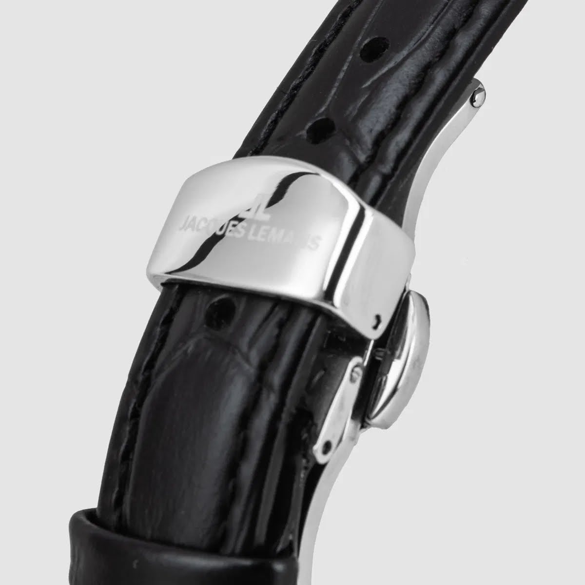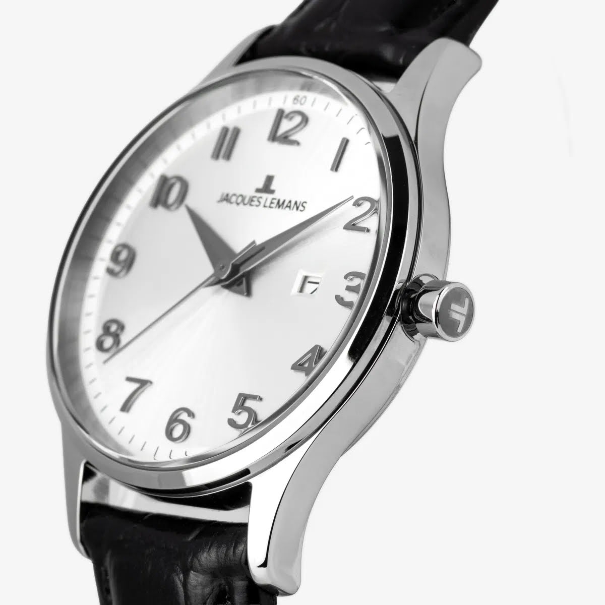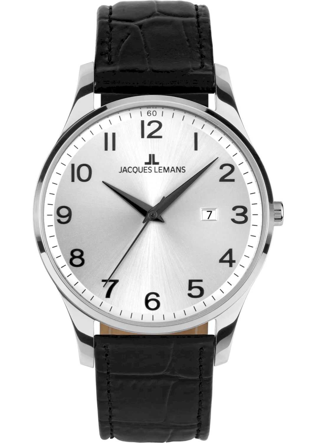 В серию 1-2216 входят классические часы, актуальность которых и сегодня не вызывает сомнений. Для корпуса из нержавеющей стали выбрали универсальную круглую форму со слегка изогнутыми ушками, диаметр корпуса 32 мм. Он будет комфортно лежать на запястье и не мешать длинным рукавам одежды. На белом циферблате с полировкой в виде солнечных лучшей расположены хорошо читаемые арабские цифры и индексы, контрастно выделенные ионным напылением черного цвета. Стрелки дополнены зеркальной полировкой. Кварцевый механизм предусматривает и индикацию даты: окошко расположено на 3 часах. В модели установлено ударопрочное минеральное стекло. Ремешок выполнен из натуральной кожи черного цвета. На него установлена стальная застежка-клипса с двумя боковыми кнопками. Такая конструкция надежна и удобна в использовании. Элегантные часы 1-2216 легко дополнят ваш повседневный образ, их легко представить и в рамках более строгого делового стиля.