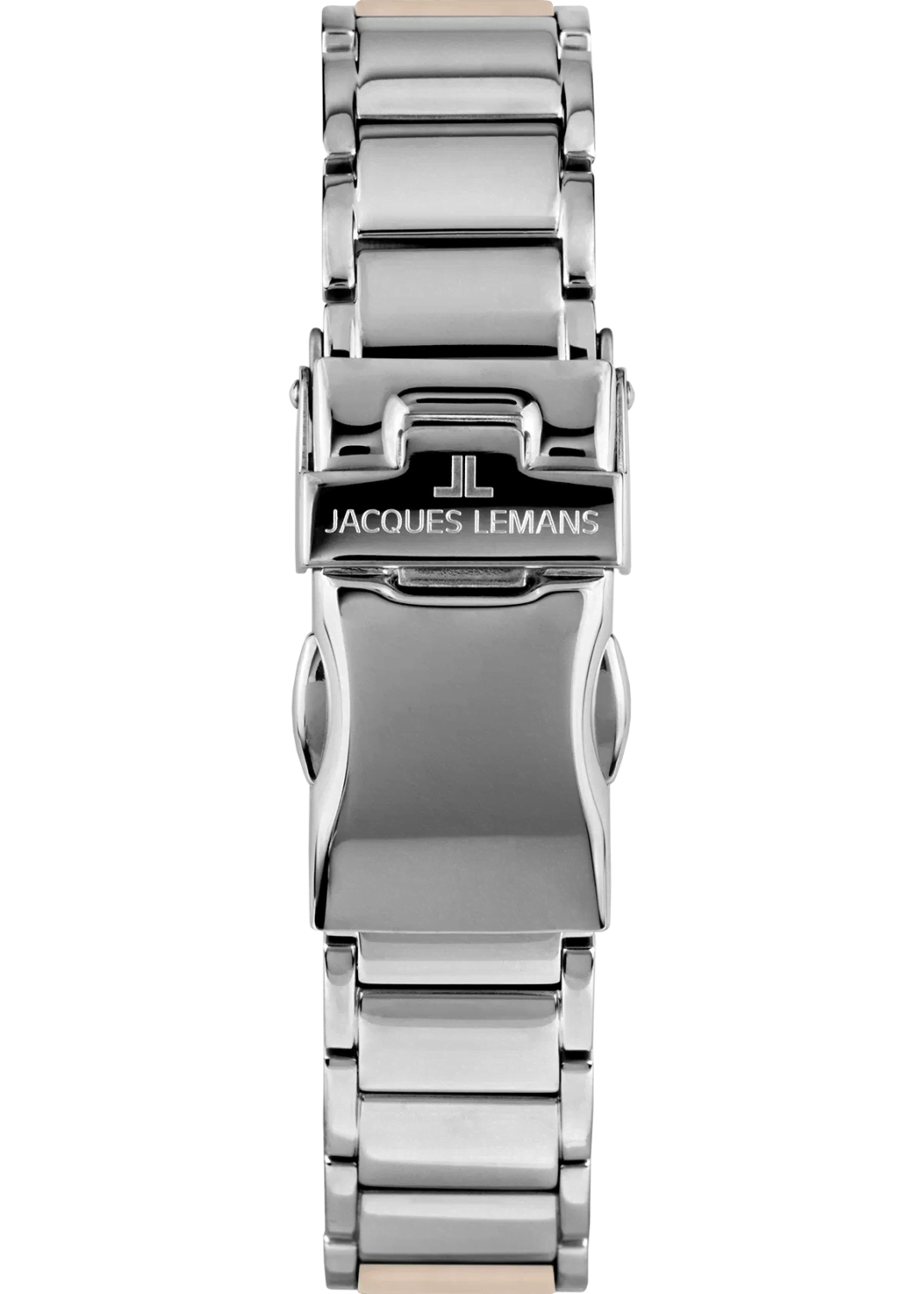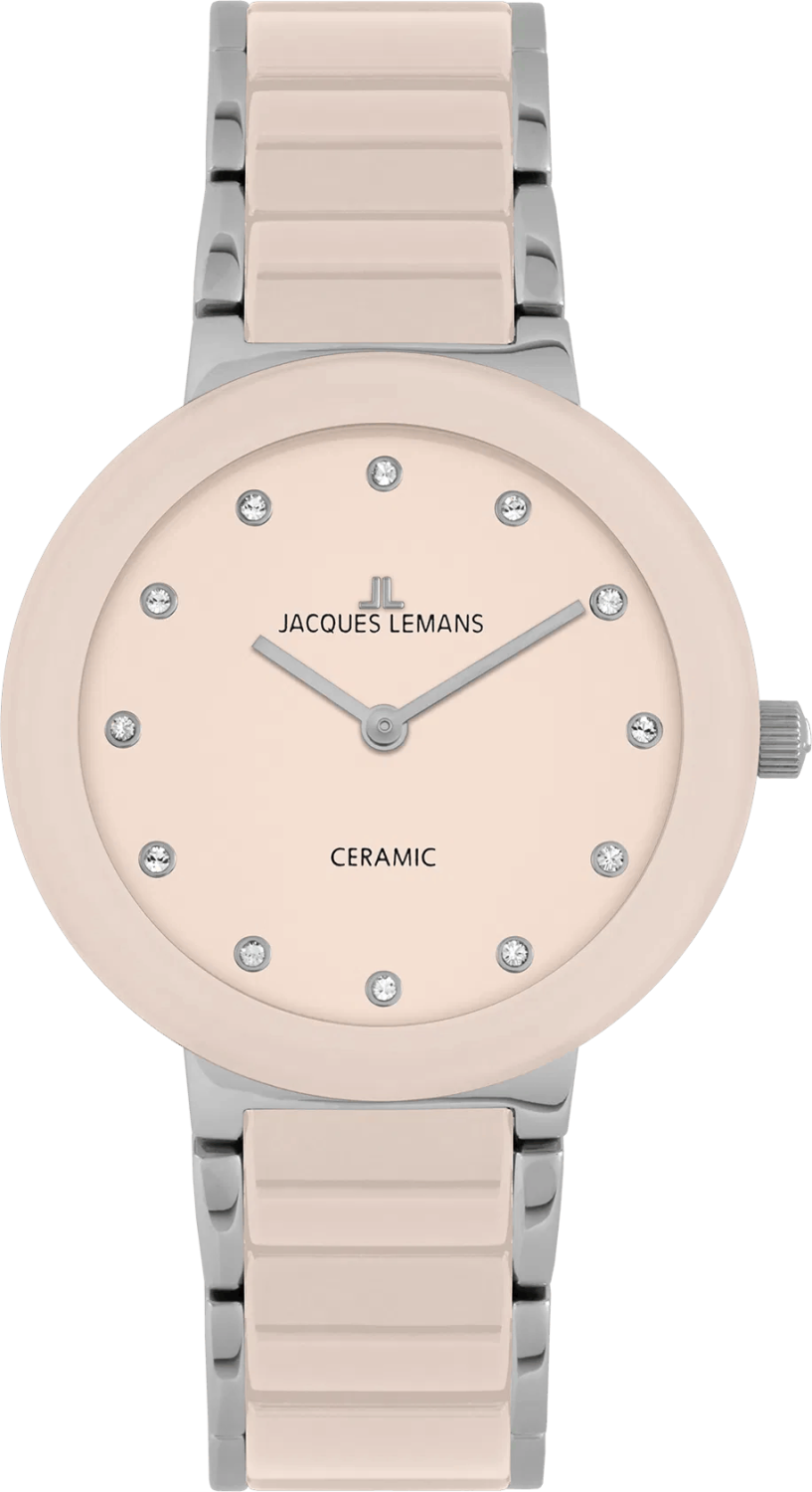 Кварцевые часы серии High Tech Ceramic выполнены в модном стиле «минимализм». Их лаконичный корпус диаметром 34 мм сделан из нержавеющей гипоаллергенной стали. На матовом розовом циферблате расположены хорошо читаемые риски и стрелки часов и минут. В модели установлено ударопрочное минеральное стекло Crystex. Повышенная водостойкость равна 10 атмосфер. В качестве материала для центральных звеньев браслета выбрана высокотехнологичная керамика серого цвета. Этот материал способен не только стойко сопротивляться появлению микроцарапин, но и подарить приятные тактильные ощущения при использовании он быстро достигает комфортной температуры тела. Браслет дополняет надежная застежка-клипса с логотипом бренда Jacques Lemans. Эти элегантные и эффектные часы станут яркой деталью любого образа: от повседневного до вечернего.