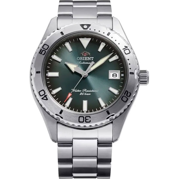 Мужские механические часы с автоподзаводом. Калибр механизма F6722 на 22 камнях. Центральные часовая, минутная и секундная стрелки. Апертура даты в позиции 3 часов. Зеленый градиентный циферблат. Индикация времени штрихи. Круглый корпус выполнен из нержавеющей стали. Диаметр корпуса 39.9 мм, толщина 12.8 мм. Стальной браслет, тройная раскладывающаяся застежка. Устойчивое к возникновению царапин сапфировое стекло. Завинчивающаяся заводная головка. Водостойкость WR 200