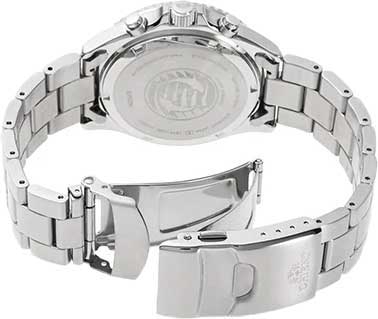 Спортивный дизайн и функциональность - этот аксессуар будет всегда уместен в вашей повседневной жизни. Питание от солнечной энергии. Часы-хронограф с секундомером. Секундомер с точностью 1с и временем измерения 60мин. 12-ти и 24-х часовой формат времени и секундная стрелка вынесены на отдельные циферблаты. Метки в виде штрихов и арабской цифры 12. Безель вращается в одном направлении. Окошко даты находится между отметками 4 и 5 часов. Завинчивающаяся заводная головка с защитой. Завинчивающаяся задняя крышка украшена гравировкой. Браслет с раскладывающейся застежкой. Застежка с системой блокировки.
