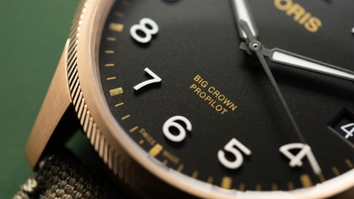Часы Oris Big Crown ProPilot Big Date теперь имеют бронзовый корпус, безель и заводную головку. Черный циферблат с золотыми индексами и стрелками Super LumiNova® обеспечивает читаемость. Модель оснащена зеленым ремешком Ventile® с бронзовой застежкой Lift и автоматическим механизмом Swiss Made.