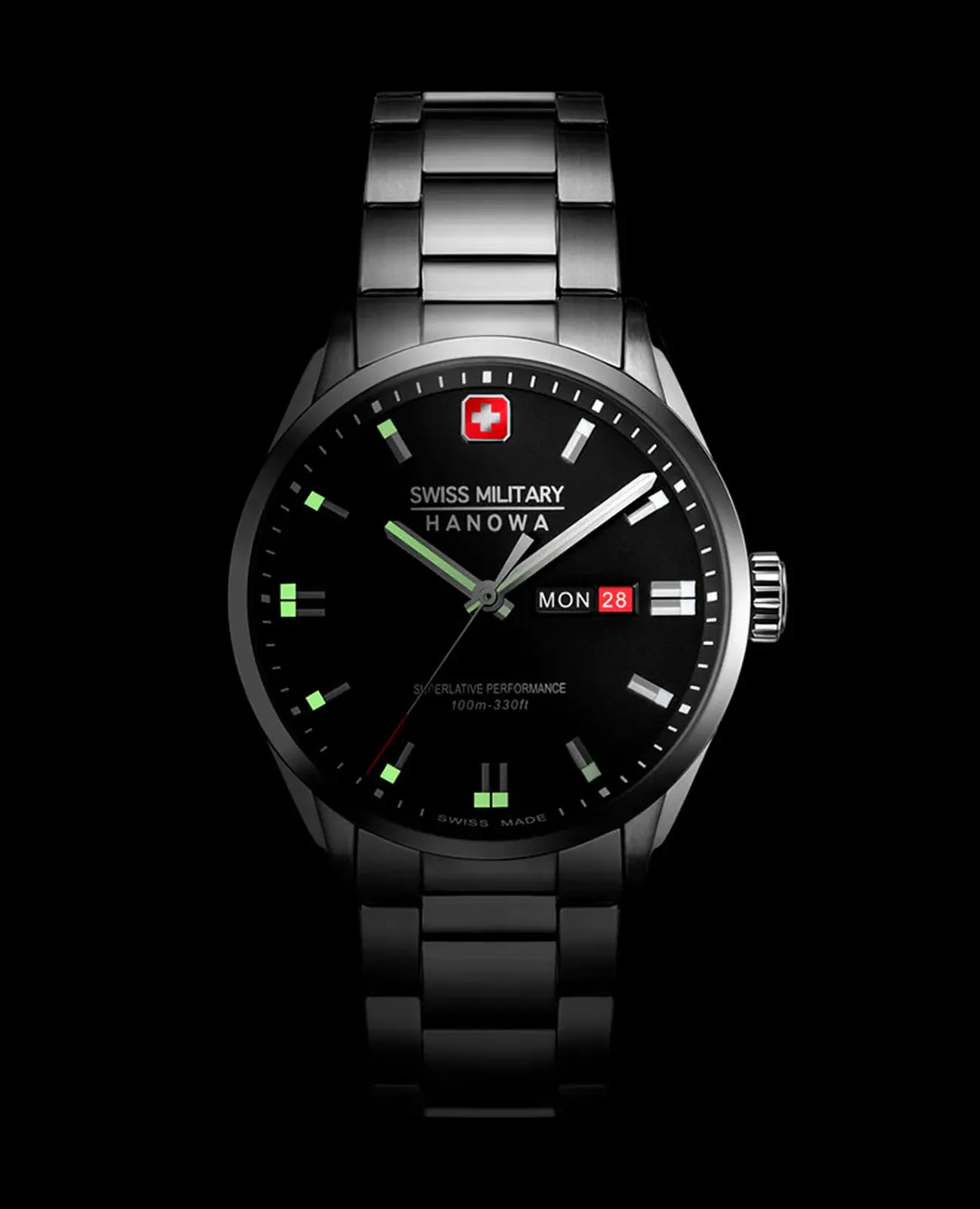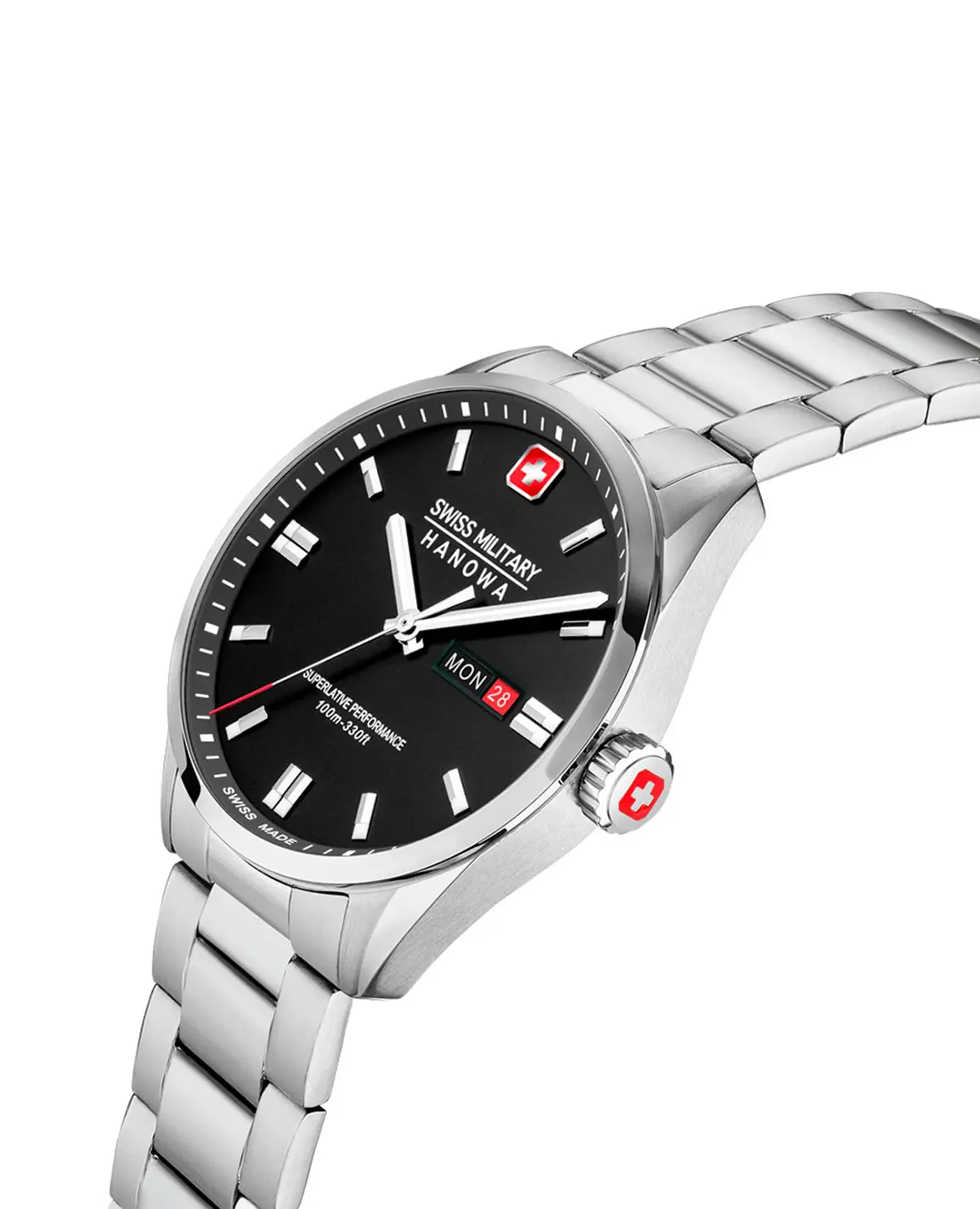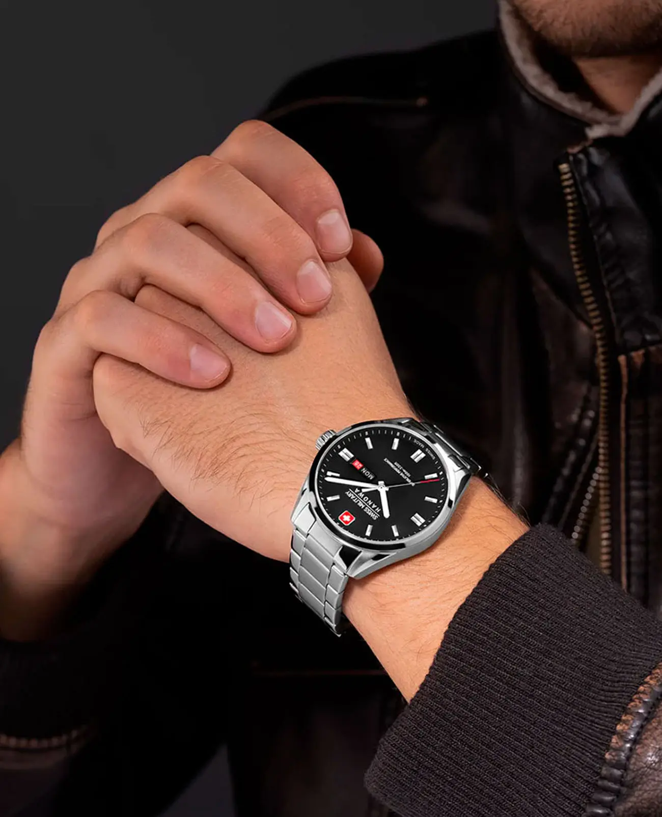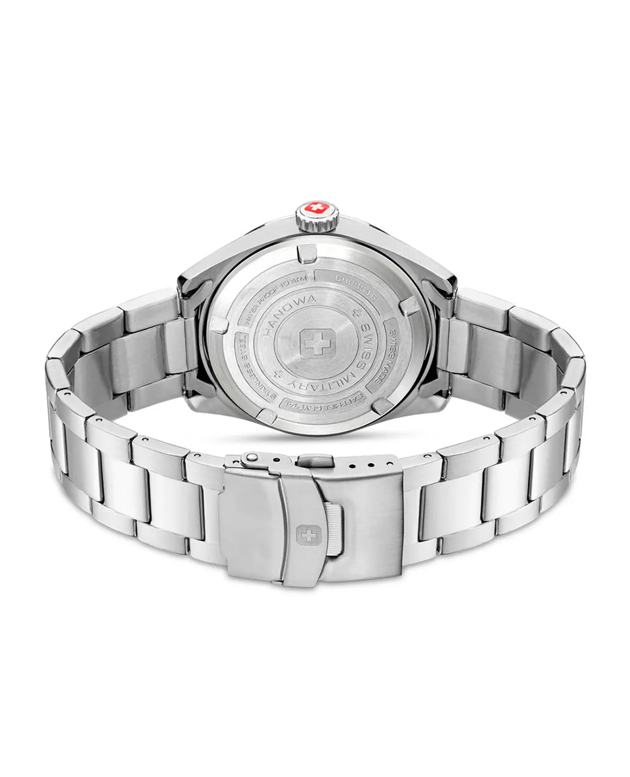 Мужские швейцарские часы с сапфировым стеклом Swiss Military Hanowa Maxed SMWGH0001601, кварцевый механизм с высокой точностью. Сапфировое стекло устойчивое к появлению царапин, обладающее высокой прозрачностью. Корпус часов изготовлен из стали. Окошко даты находится в положении 3 часов. Стрелки и метки с люминесцентным покрытием. Класс водозащиты: 100 метров, позволит плавать, нырять и заниматься другими водными видами спорта. Стальной браслет на раскладной застёжке
