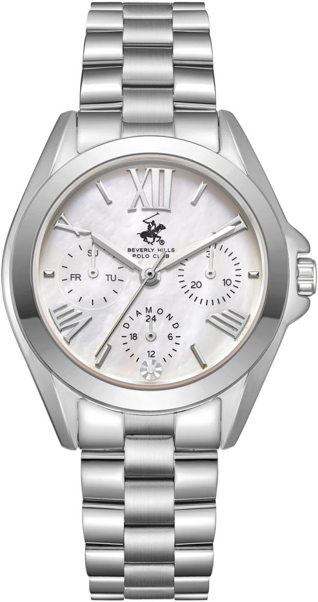 Женские кварцевые часы в корпусе из суперметалла. Перламутровый циферблат с накладными римскими цифрами с оригинальным дизайном и бриллиантом на «6 часах». Три субдиска, отображающие дату, день недели и 24 часа. Минеральное стекло с сапфировым напылением, устойчивое к повреждениям. Интегрированный браслет из нержавеющей стали. Стильный и функциональный аксессуар, который станет незаменимым для любого повседневного образа.