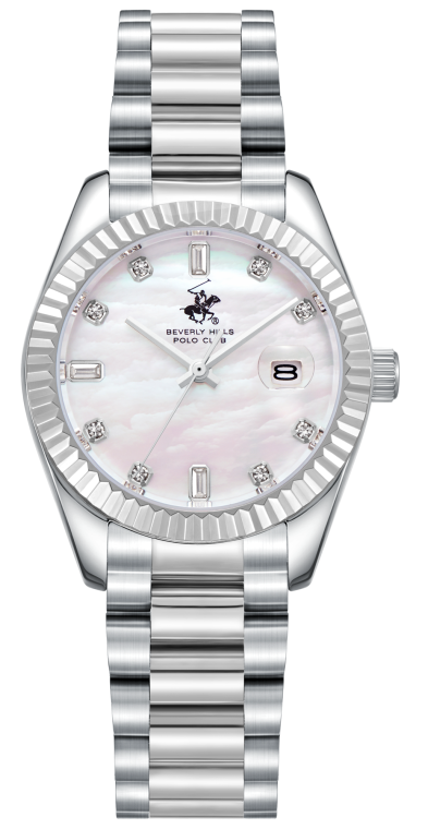 Женские кварцевые часы с классическим дизайном, украшены цирконами, рифленый безель.