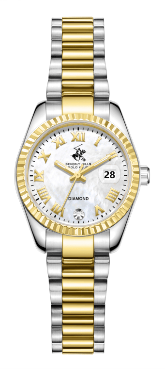 Это стильный женский аксессуар, который сочетает элегантный дизайн и практичность. Корпус выполнен из нержавеющей стали серебристого цвета с частичным IP покрытием жёлтого цвета.