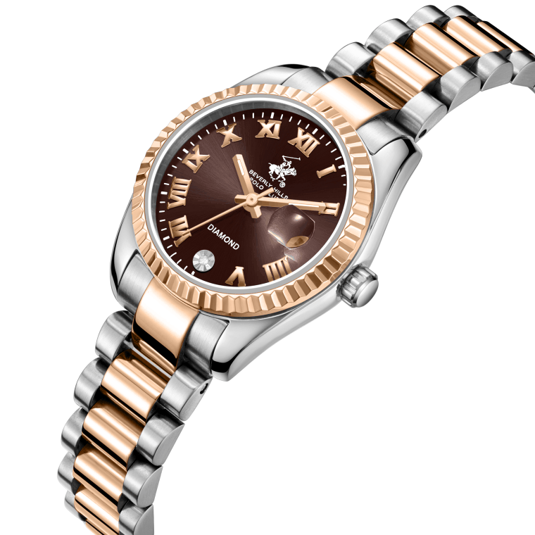 Это стильный женский аксессуар, который сочетает элегантный дизайн и практичность. Корпус выполнен из нержавеющей стали серебристого цвета с частичным IP покрытием розового цвета.
