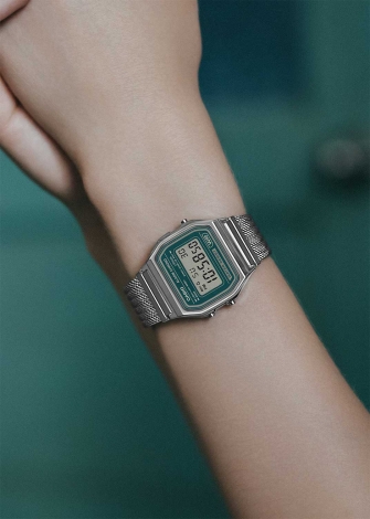 Vintage. Унисекс часы. Циферблат подсвечивается светодиодом. Цвет подсветки: зеленый. 12-ти и 24-х часовой формат времени. Секундомер с точностью показаний 1/100с и временем измерения 1ч. SPLIT-хронограф. Батарея рассчитана на 7 лет. Стальная задняя крышка крепится на 4-х винтах. Браслет миланского плетения с регулируемой застежкой.