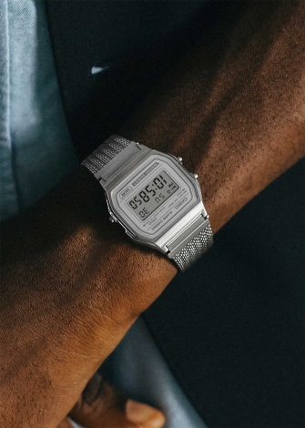 Vintage. Унисекс часы. Циферблат подсвечивается светодиодом. Цвет подсветки: зеленый. 12-ти и 24-х часовой формат времени. Секундомер с точностью показаний 1/100с и временем измерения 1ч. SPLIT-хронограф.Батарея рассчитана на 7 лет. Стальная задняя крышка крепится на 4-х винтах. Браслет миланского плетения с регулируемой застежкой.