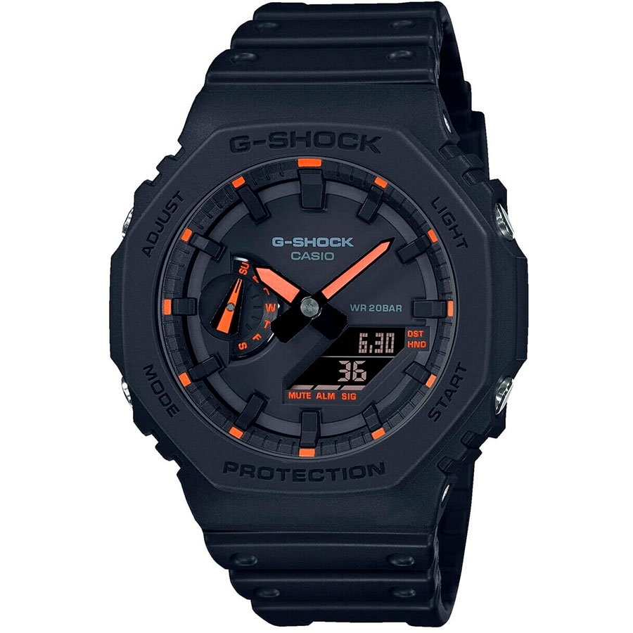 Ударопрочные часы с функциональной начинкой прекрасно подойдут для любителей активного образа жизни. Новая серия часов со структурой Carbon Core Guard. Противоударный пластиковый корпус с карбоновыми волокнами более прочный и, в то же время, более легкий. Этот же материал защищает внутренний модуль от повреждений и деформаций при ударах. Электролюминесцентная подсветка освещает весь циферблат. Функция парный иллюминатор обеспечивает подсветку не только аналогового циферблата, но и цифрового дисплея. Необритовое светонакопительное покрытие обеспечивает длительное послесвечение в темноте даже после кратковременного нахождения на свету. Мировое время. 12-ти и 24-х часовой формат времени. Секундомер с точностью показаний 1/100с и временем измерения 24ч. SPLIT-хронограф. Таймер обратного отсчета от 1с до 24ч. Функция перемещения стрелок. Функция отключения/включения звука. Задняя крышка на 4-х винтах.