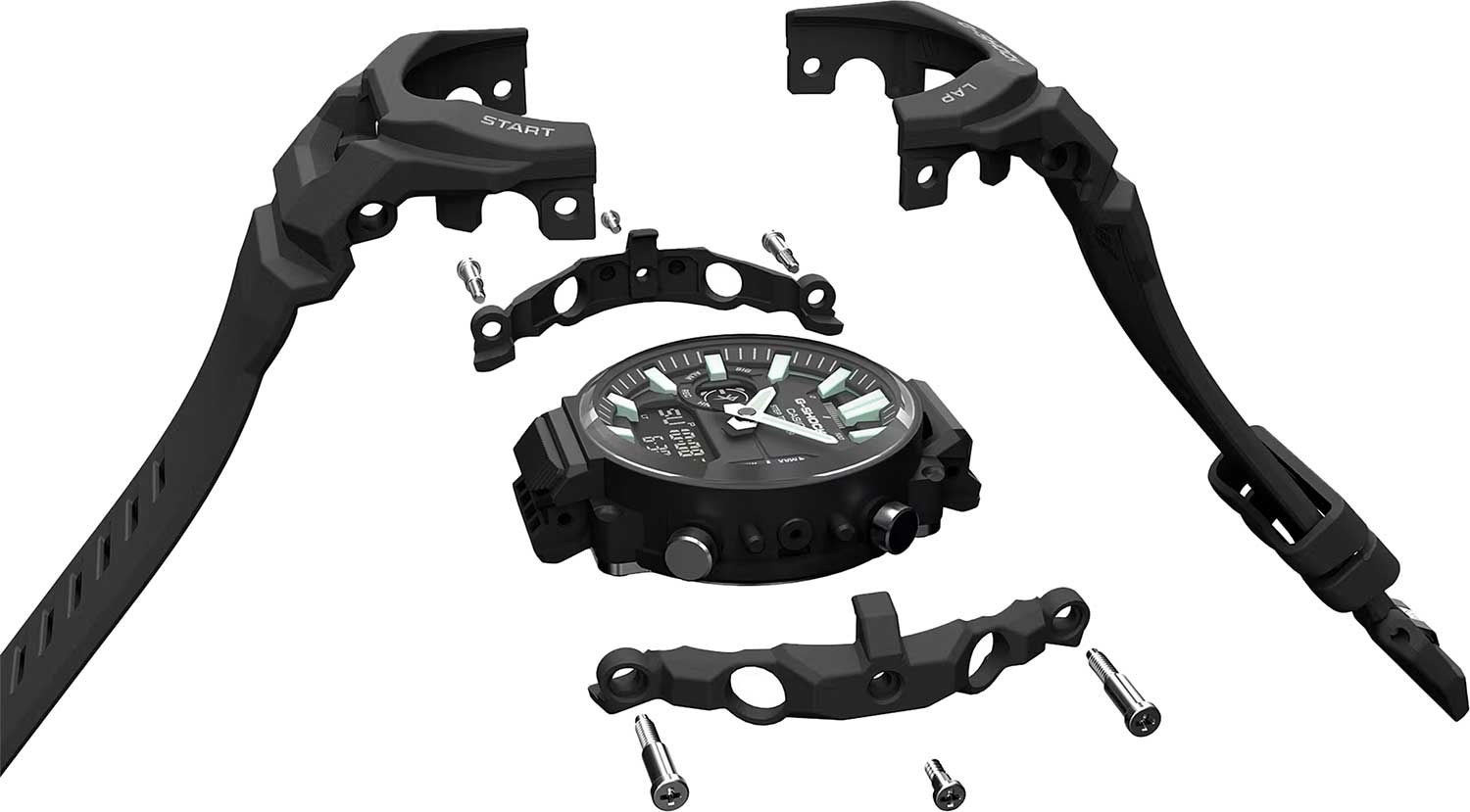 Мужские часы G-SQUAD. Корпус и ремешок выполнены из биопластика, который изготавливается из возобновляемых органических ресурсов. Противоударный корпус защищает механизм от ударов и вибрации. Двойная подcветка: циферблат и ЖК-дисплеи подсвечиваются светодиодом, благодаря наличию функции задержки, после отпускания кнопки освещение горит еще несколько секунд. Настраиваемое послесвечение 1,5 или 3сек. Цвет подсветки: белый. Необритовое светонакопительное покрытие обеспечивает длительное послесвечение в темноте даже после кратковременного нахождения на свету. • Второй часовой пояс.Второй часовой поясЧасовая опция, позволяющая отображать время двух часовых поясов одновременно.• 12-ти и 24-х часовой формат времени.• Секундомер с целевым таймером и двумя точностями показаний: 1/100с (до 1ч) и 1с (после 1ч), время измерения 24ч.• Объем памяти до 45 записей (дата, время, время круга, средний темп, сожженные калории и др.).• SPLIT-хронограф.• Таймер обратного отсчета с 5-ю предустановленными интервалами измерений и автоповтором до 20 раз.• Диапазон отсчета от 1с до 1ч.• Мировое время.• Шагомер. Индикатор в положении «12 часов» показывает прогресс в достижении целей.• Функция расчета Lifelog - расчет калорий и расстояния на основе количества шагов.• Беспроводная технология Bluetooth® со сверхнизким потреблением энергии для синхронизации со смартфоном.• При подключении к смартфону часы автоматически корректируют текущее время, копируют настройки мирового времени более чем для 300 городов, расчет расстояния по GPS смартфона, просмотр истории активности и др.• Авиарежим.• Функция перемещения стрелок для беспрепятственного просмотра информации на цифровых дисплеях, отключения/включения звука и поиска телефона.• Индикатор низкого уровня зарядки батареи.• Батарейка рассчитана на 2 года.• Стальная задняя крышка крепится на 4-х винтах.• Безель и ремешок соединены в единое целое.• Классическая застежка.