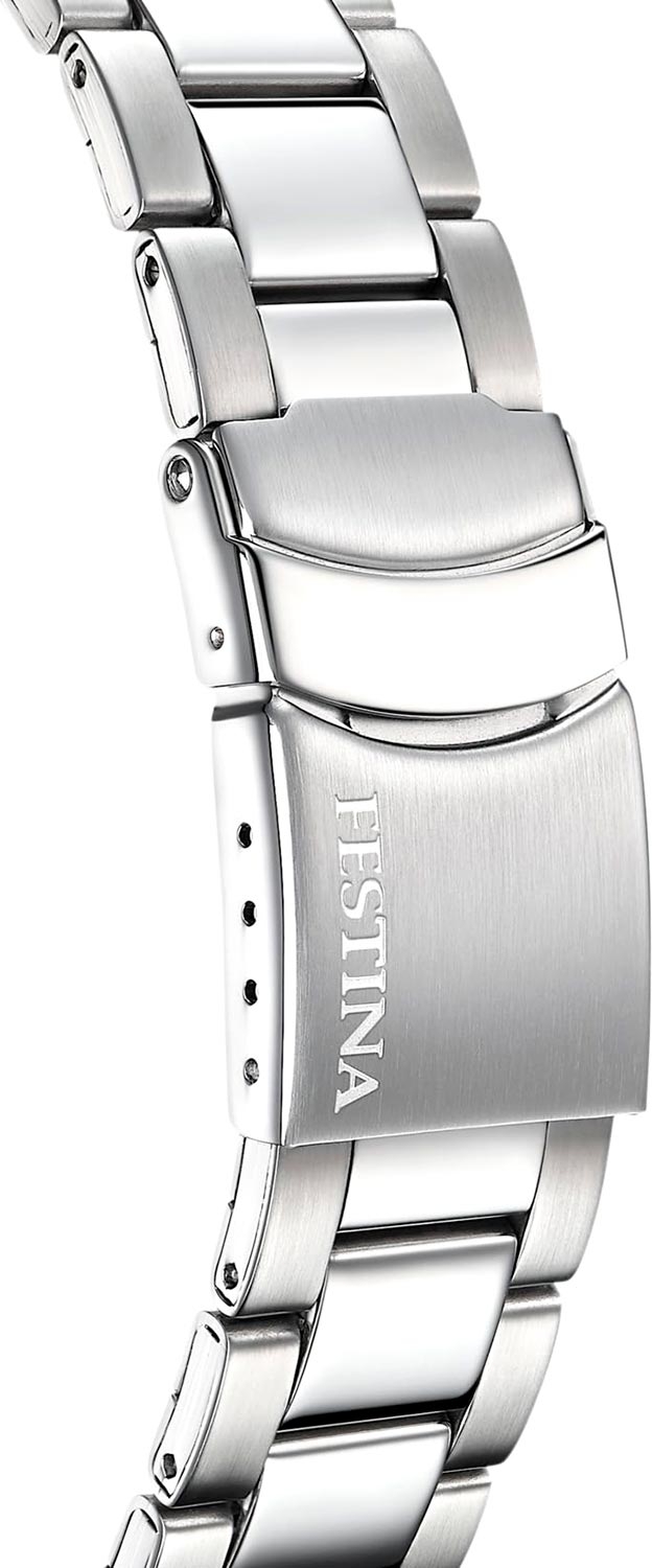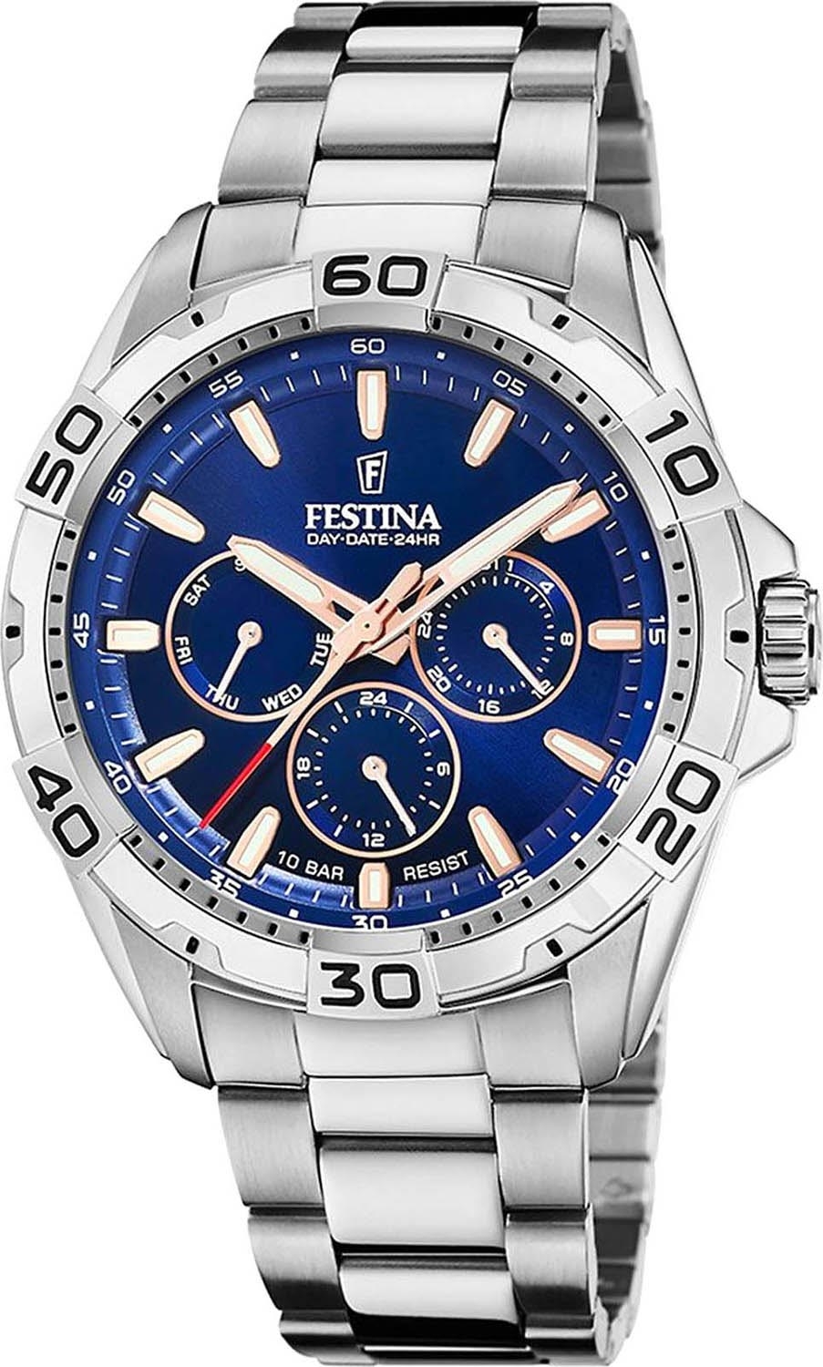 Практичные мужские часы для повседневного использования. Круглый корпус из нержавеющей стали. Безель с минутной шкалой. Циферблат выполнен по технологии Sunray (солнечные лучи). 12-ти и 24-х часовой формат времени. Накладные метки в виде штрихов. Дата и день недели вынесены на отдельные циферблаты. Прямоугольные стрелки в стиле Baton. Стрелки и метки с люминесцентным покрытием, которое светится в темноте после непродолжительной зарядки на свету. Минеральное стекло. Рифленая заводная головка с защитой. Часы оснащены надежным браслетом из нержавеющей стали с раскладывающейся застежкой.