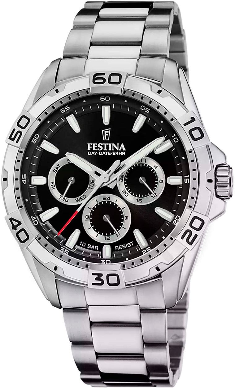 Циферблаты с несколькими счетчиками, спортивный дизайн - данная коллекция позволит вам подобрать часы себе или в подарок, который обязательно понравится! Мужские часы с круглым корпусом. 12-ти и 24-ти часовой формат времени. Число и день недели отображаются на отдельных циферблатах. Метки в виде штрихов. Рифленая заводная головка с защитой. Браслет с раскладывающейся застежкой.