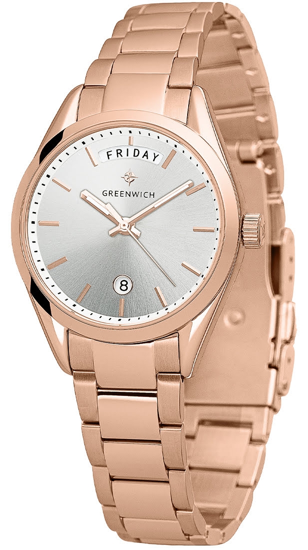 Привлекательность часов новой серии Astrea основана на современной интерпретации классического дизайна и надежности, которая необходима для повседневного аксессуара. 34 миллиметра — именно такой диаметр выбрали создатели модели для корпуса, сделанного из нержавеющей стали с PVD-покрытием из розового золота. Он элегантно смотрится и удобен даже в сочетании с длинным рукавом одежды. Не зря лаконичные аксессуары снова уверенно идут вверх в списке модных трендов. На белом циферблате движутся стрелки, часовая и минутная с люминесцентным покрытием, которое светится в темноте. Накладные индексы хорошо читаются, как и широкий индикатор дня недели. Аккуратное окошко даты расположено на 6 часах. Повышенная водостойкость составляет 10 атмосфер: можно плавать, не снимая часы с запястья. Браслет состоит из литых стальных звеньев и стальной же застежки-клипсы с логотипом бренда. Стильные часы Astrea деликатно подчеркнут элегантность образа и покажут точную информацию о времени, дате и дне недели.
