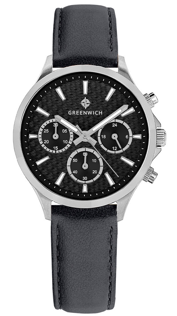Часы GW 363.11.31 серии Mermaid - находка для тех, кто ищет надежные и, в тоже время, элегантные часы. Кварцевый механизм, установленный в 35-миллиметровый корпус из нержавеющей стали, оснащен функционалом хронографа: вынесенные на дополнительные индикаторы стрелки позволяют засекать время в минутах и секундах. Кроме этого, на черном циферблате разместили индикатор 24-часов. Каждый из индикаторов выделен накладной рамкой с зеркальной полировкой. Накладные риски и центральные стрелки покрыты люминесцентным составом. Элегантность модели подчеркивает гильоше: выполненное в виде волнообразных линий, оно дарит циферблату объем и глубину. В часах установлено минеральное стекло. Водостойкость 10 атмосфер. Хронограф серии Mermaid можно приобрести на ремешке из натуральной кожи черного цвета. Застежка-пряжка выполнена из нержавеющей стали.