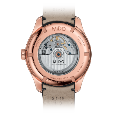 Циферблат этих швейцарских часов Belluna Sunray с узором в виде солнечных лучей перекликается с куполом Королевского Альберт-Холла. Полированный и сатинированный корпус придает дополнительный шик этим элегантным часам. Сквозь прозрачную заднюю крышку виден автоматический механизм Mido Caliber 80 с запасом хода до 80 часов.