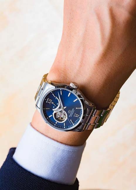 Contemporary. В механизме 22 камня, частота 21600 полуколебаний в час. Ретроградный указатель запаса хода до 50 часов. Возможность ручного завода. Функция stop-second. Защищены от магнитных полей (до 4800 А/м). Сквозь прозрачное окошко на циферблате можно наблюдать за работой механизма часов. Циферблат выполнен по технологии Sunray (солнечные лучи). Накладные метки в виде штрихов и римских цифр VI и XII. Клиновидные стрелки в стиле Dauphine. Рифленые кнопки и заводная головка. Завинчивающаяся прозрачная задняя крышка с минеральным стеклом. Надежный стальной браслет с раскладывающейся застежкой.