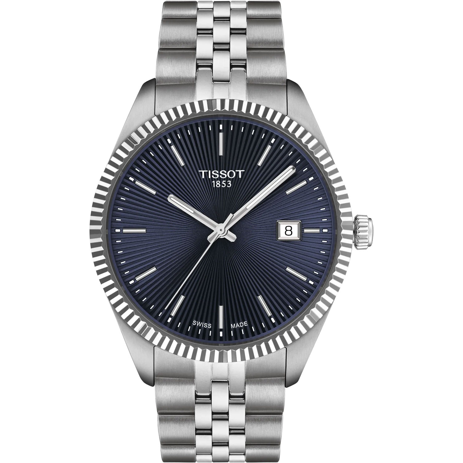 Эти часы созданы, чтобы подчеркнуть ваш стиль для действительно особенных моментов. Традиционный гильошированный циферблат с солнечными лучами красиво отражает свет, добавляя глубины и элегантности. Рифленый безель представляет собой изысканное украшение, представляющее традиционное часовое мастерство. Сменный быстросъемный браслет обеспечивает максимальную универсальность, позволяя вам легко менять свой образ.