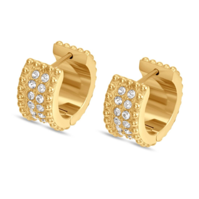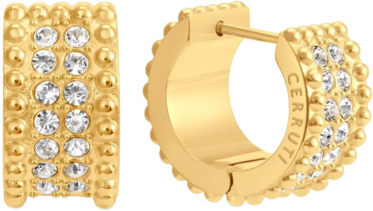 Роскошь пронизывает каждую деталь серег Cerruti 1881 Isadora CIJLE0013401. Эти золотистые серьги-кольца имеют бочкообразную форму с изысканными деталями, а ряды сверкающих кристаллов подчёркивают их вневременную элегантность.