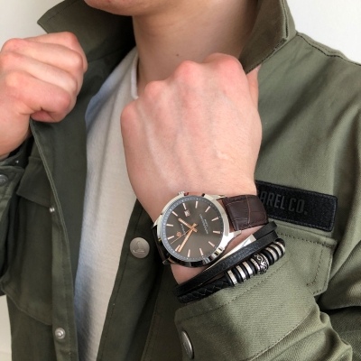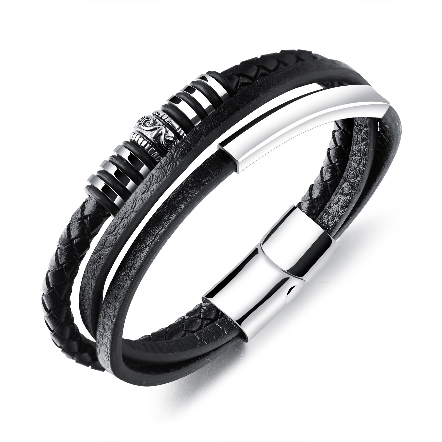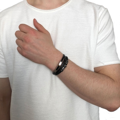 Браслет собран из натуральных кожаных нитей различных по толщине и плетению и дополнен декоративными элементами из нержавеющей стали с полировкой. Стальная застежка с магнитным креплением позволяет надежно удерживать браслет на запястье. Стильный и универсальный, этот аксессуар поможет обновить и разнообразить выбранный вами образ.