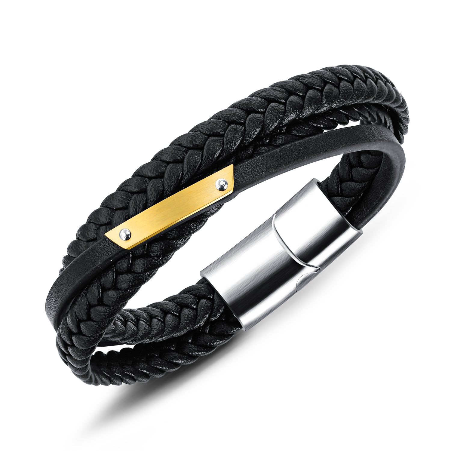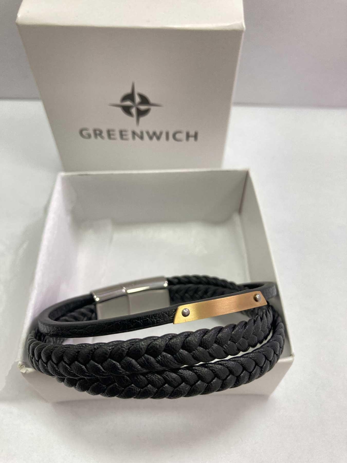 В дизайне браслета Greenwich прослеживается модная сейчас многослойность. По сути, магнитная застежка из нержавеющей стали объединяет несколько браслетов в один стильный сет. Разные по толщине и фактуре нити из натуральной кожи универсального черного цвета смотрятся эффектно в сочетании со стальной пластиной. Она украшена эффектным PVD-покрытием из желтого золота. Разнообразить привычный образ, подчеркнуть индивидуальность владельца — все это возможно с браслетами Greenwich.