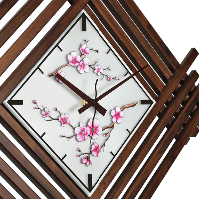 Циферблат часов выполнен в стиле японской многослойной живописи «Кимэдаси». 12 слоев краски на стекле создают объемный рисунок, покрытый защитным лаком.
