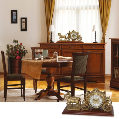 Кварцевые музыкальные настольные часы с боем. Данная модель работает от батареек типа АА x 2 шт. (входят в комплект). Корпус выполнен из пластика на деревянной подставке. Максимально допустимая погрешность точности хода +30/-30 секунд в месяц. Ход стрелки — плавный (бесшумный).
